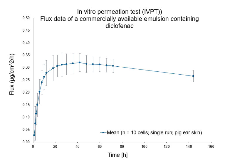 • Evaluierung des charakteristischen Permeationsprofils eines Wirk- /Inhaltsstoffs (“flux rate”, “amount permeated”) durch menschliche oder tierische Haut)