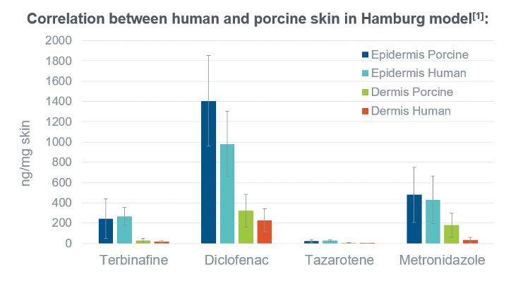 • Innovatives Hautpenetrationsmodell unter Verwendung viabler Schweinehaut. Exzellente Korrelation mit viabler Humanhaut nachgewiesen.