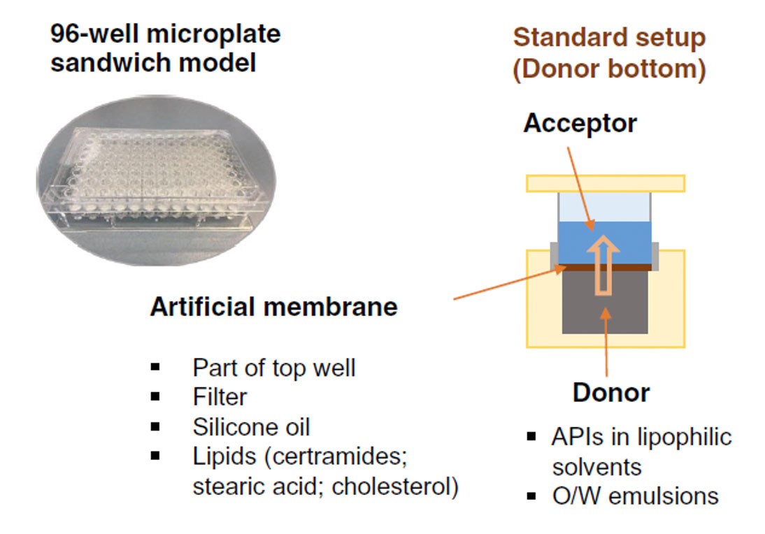 • 96-well plate-Format mit einer porösen, Lipid-imprägnierten Filtermembran, die das Stratum Corneum als Hauptpenetrations-Barriere für dermale Absorption nachbildet