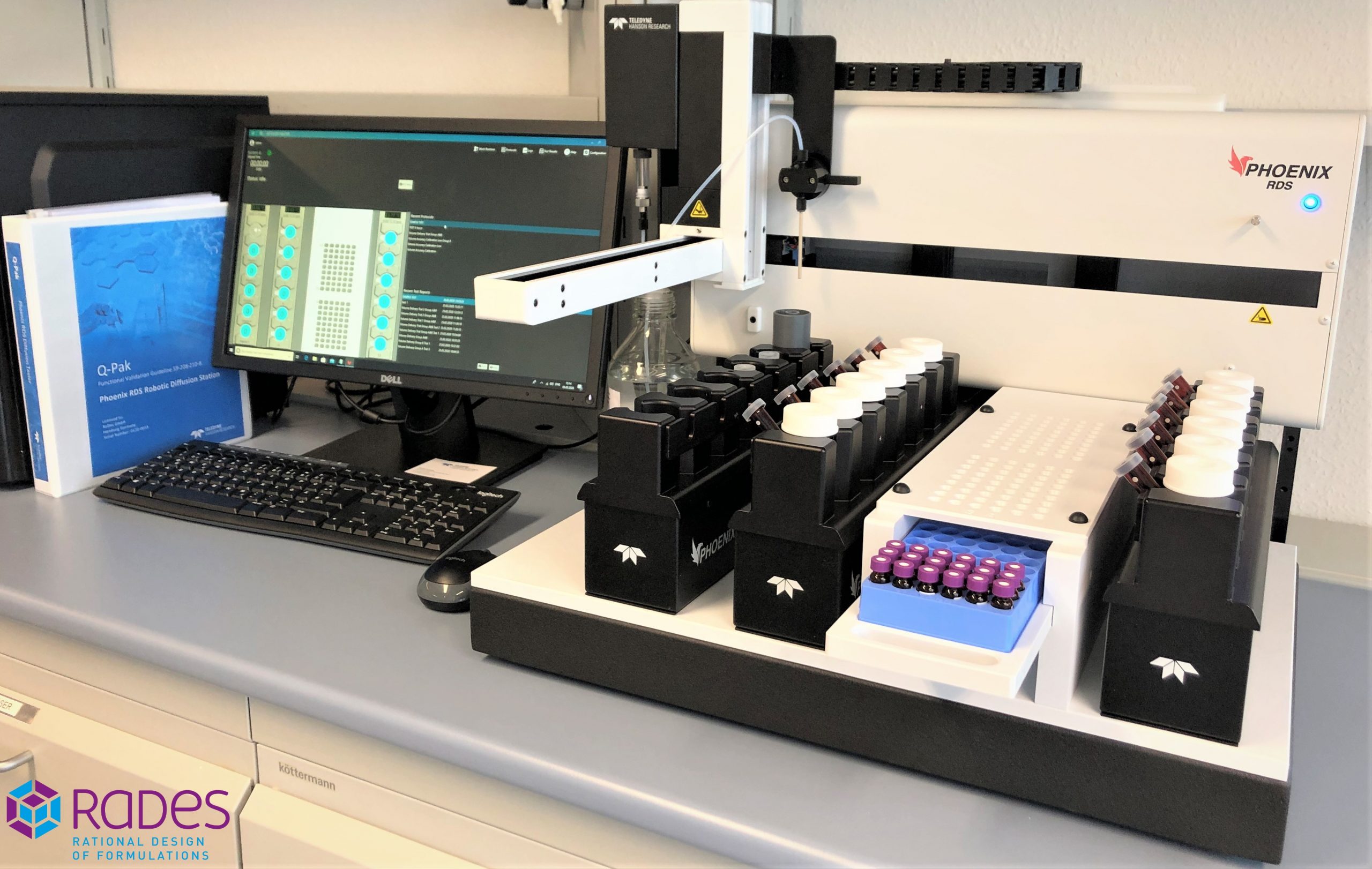 • Studien mittels “Robotic diffusion system” (RDS) mit Trockenheizblocks und optimierten Rührergeometrien für verbesserte Datenqualität. Parallele Durchführung mit 12 vertikalen Diffussionszellen